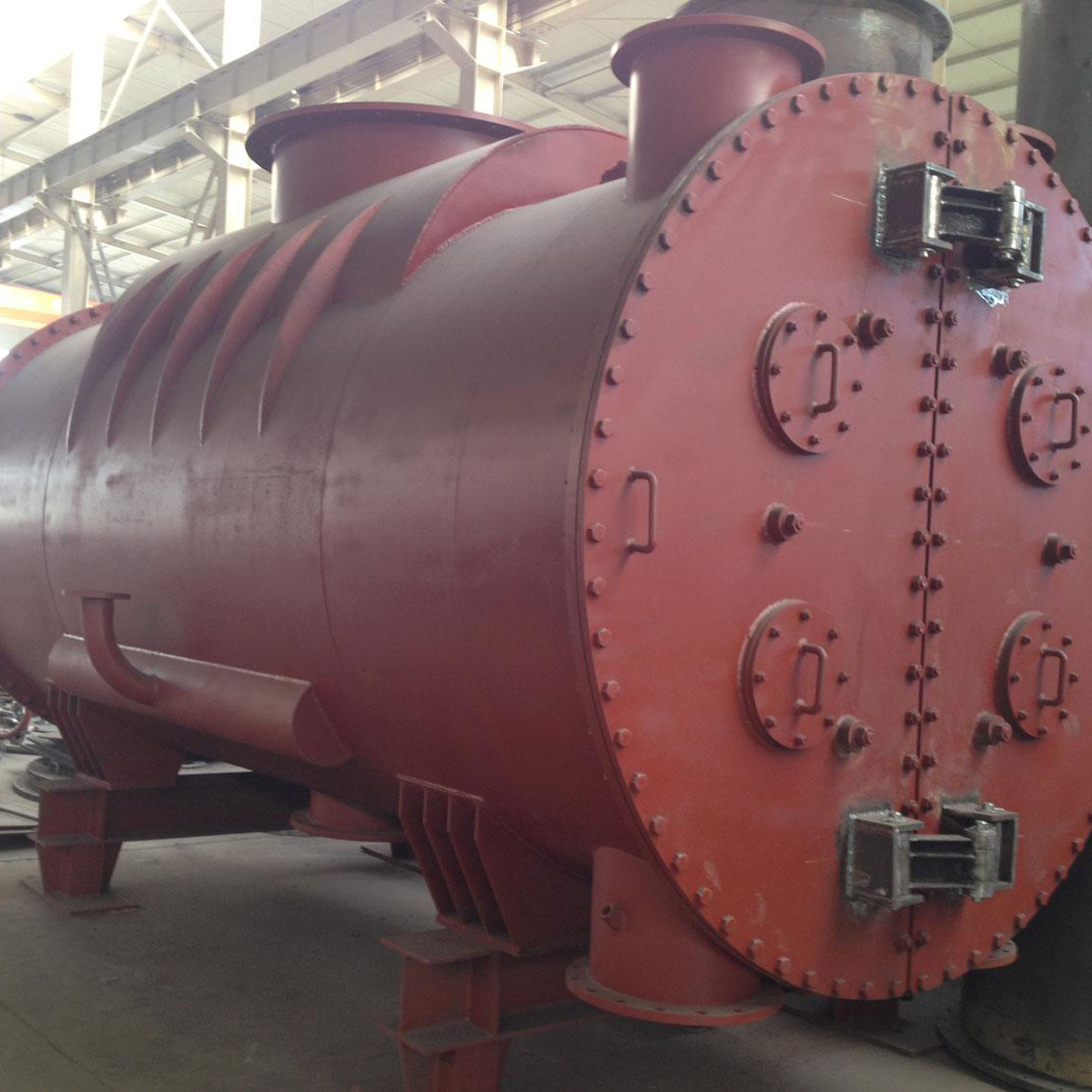 管束中间有从进口直达热水井之宽阔汽道,两侧管束用带形排列,在带形外侧,另为蒸汽冲刷之部分管子。采用不锈钢管,在汽道之间布置有挡汽板等防止蒸汽短路。